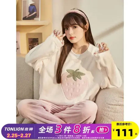 • 唐狮秋冬新款草莓睡衣女珊瑚绒甜美加绒加厚长袖女家居服套装外穿图片